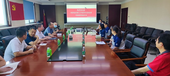 半导体大直径硅片制造装备的维修改造技术创新工作室领衔人刘义、区熔车间先进班负责人尚锐刚分别进行了工作汇报,双方就创新工作室和先进班组的建设、工作开展情况进行了深入的探讨和经验交流,并表示在今后的工作中,要更进一步的交流,互相取长补短,把创新工作室和先进班组的工作切实落到实处。