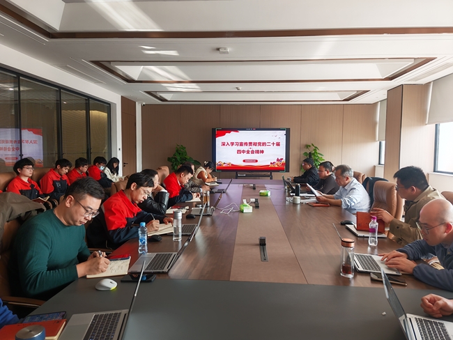 新能源党支部组织全体党员、部门负责人、入党积极分子及员工代表学习党的二十届四中全会精神,支部书记、总经理张向军为参会人员进行专题宣讲。