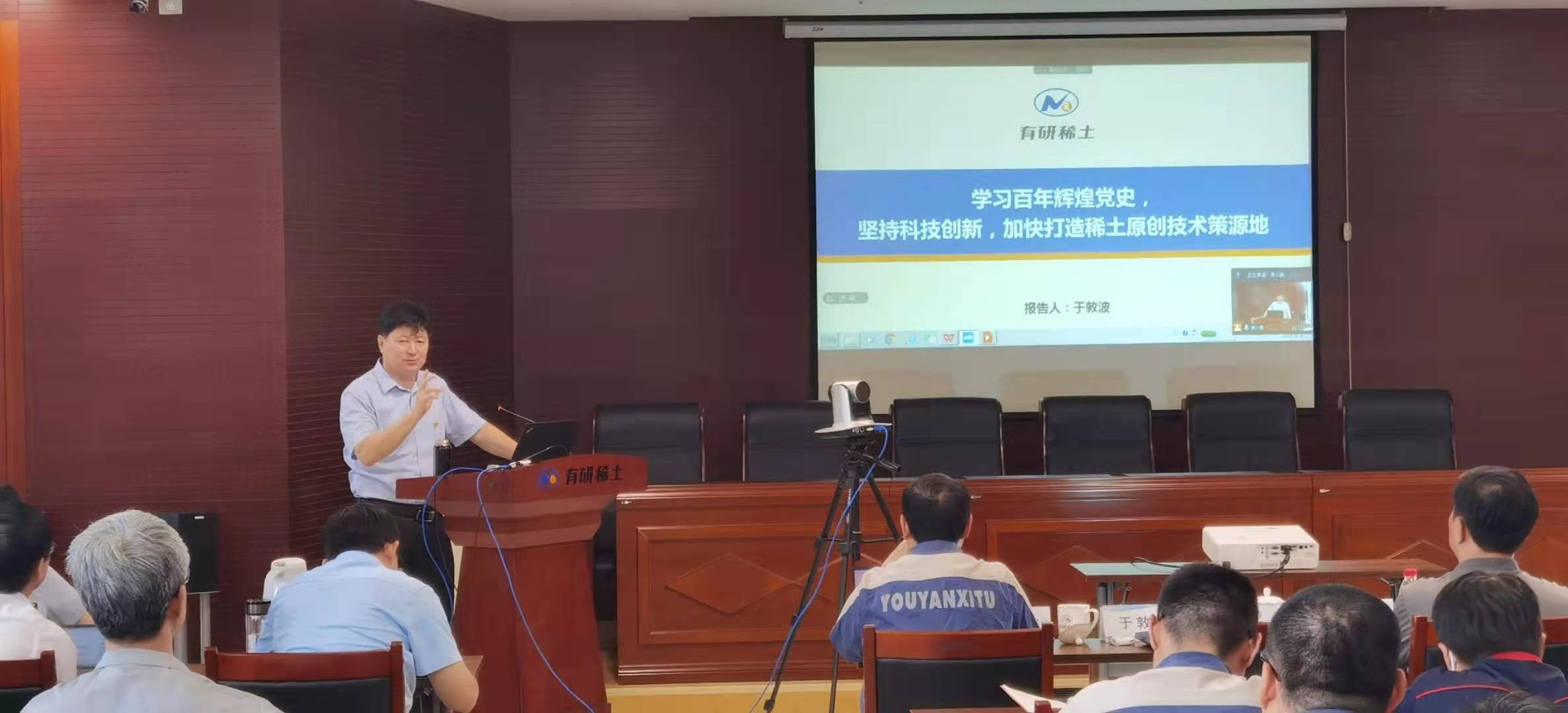 大会第五项,由于敦波书记做《学习百年党史,坚持科技创新,加快打造稀土原创技术策源地》的专题党课。他首先将中国共产党百年历史进行系统总结和阐述,然后对六合彩特码