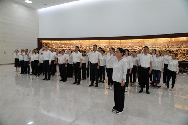 参观结束后,全体党员举拳宣誓,重温入党誓词、砥砺前进初心。