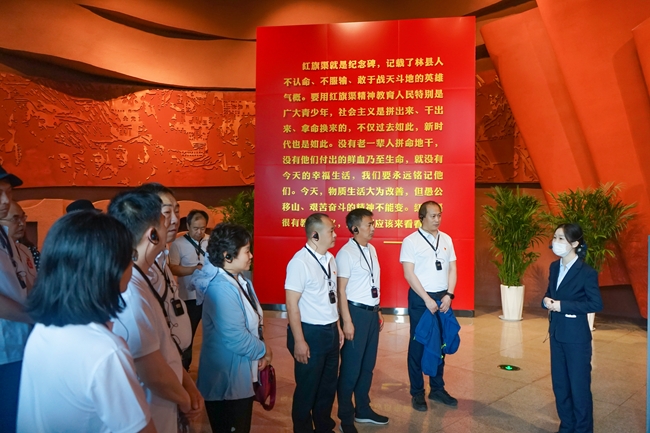 活动中,全体党员追寻总书记足迹,参观红旗渠纪念馆,在讲解员的带领下,依次参观了“序厅”“旱魔”“奇迹”“丰碑”“梦想”“精神”等展厅,了解林县人民饱受干旱煎熬进而修渠的感人故事,观看当年修渠使用的工具和大量珍贵的历史图片,全面了解了林县历史、红旗渠的由来及建造的全过程。随后,观看纪录片《红旗渠》,沉浸式重温那段战天斗地,“誓把河山重安排”的光辉历程。