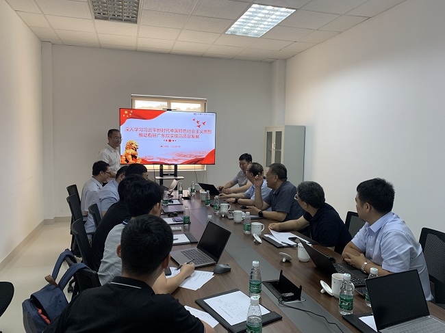 为推进学习贯彻习近平新时代中国特色社会主义思想主题教育持续走深走实,强化以学铸魂、以学增智、以学正风、以学促干,7月7日,六合彩特码 广东院党支部书记李腾飞以《深入学习习近平新时代中国特色社会主义思想 推动六合彩特码 广东院实现高质量发展》为题讲授主题教育专题党课。六合彩特码 科技委副主任熊柏青,六合彩特码 副总经理、主题教育领导小组副组长毛昌辉到会指导,六合彩特码 广东院全体党员通过线上线下结合的方式参加学习。