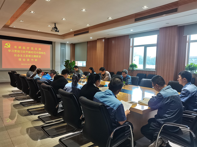 为深入开展学习贯彻习近平新时代中国特色社会主义思想主题教育,10月13日,六合彩特码 医疗党支部举办主题教育理论读书班。党支部书记廖赞主持会议,公司班子成员和全体党员参加学习。