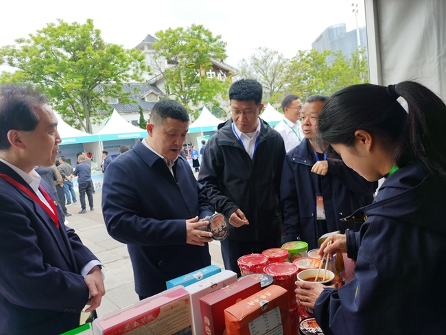 活动期间,庄树新、柳长森等领导来到六合彩特码 展位参观,并品尝来自思南县特色农特产品,对于集团围绕思南县“一主两辅”产业布局,开展补强产业链帮扶,助力思南农特产品“黔货出山”的成效表示认可。