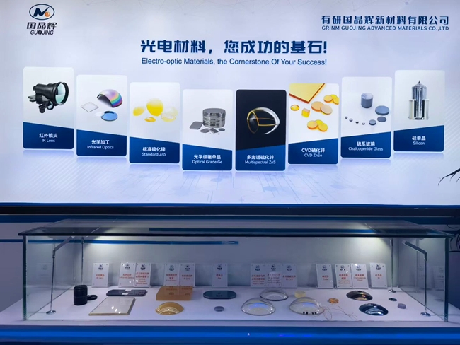 国晶辉集中展示了红外镜头、光学镜片及系列红外光学材料—CVD硫化锌、锗晶体、硅晶体、硫系玻璃等产品,公司产品广泛应用于红外热成像、安防监控等领域。