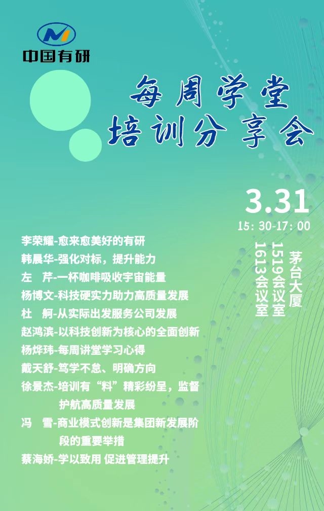 进入新时期、新阶段,集团职能部门干部员工只有进一步修炼基本功,提升专业化能力才能更好适应职能管理的新需求、新要求;全面了解和熟悉集团所属公司科研生产经营管理及各科技领域科发展等各方面情况,是提升职能部门专业化管理督导和保障服务水平的前提和基础;职能总部担负承上启下的功能,要架起桥梁,运用好政策,提供好资源,传递好信息,支撑助力所属公司创新驱动高质量发展。大家建议,“每周学堂”要坚持办下去,内容上更加多样化,讲授与交流互动并重,导师方面内外部相结合,不断提升培训学习效果。