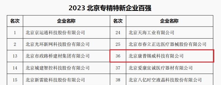 粉材、康普锡威分别荣登北京企业百强、北京制造业企业百强、北京上市公司百强、北京专精特新企业百强四大榜单。
