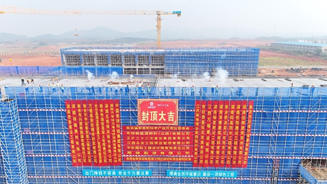 新能源年产1万吨锂离子电池新型正极材料项目按照年度建设目标已进入紧张的安装调试阶段,时间就是命令,承诺就是责任。为保证项目建设工程按期完成各项任务,公司工程建设团队克服高温、忘记疲惫,组织施工方分区有序捆扎钢筋、浇筑混凝土、砌体抹灰,保质保量开展施工质量验收、进度验收,9月底主体厂房如期实现封顶,为后续设备进场安装提供基础支撑。