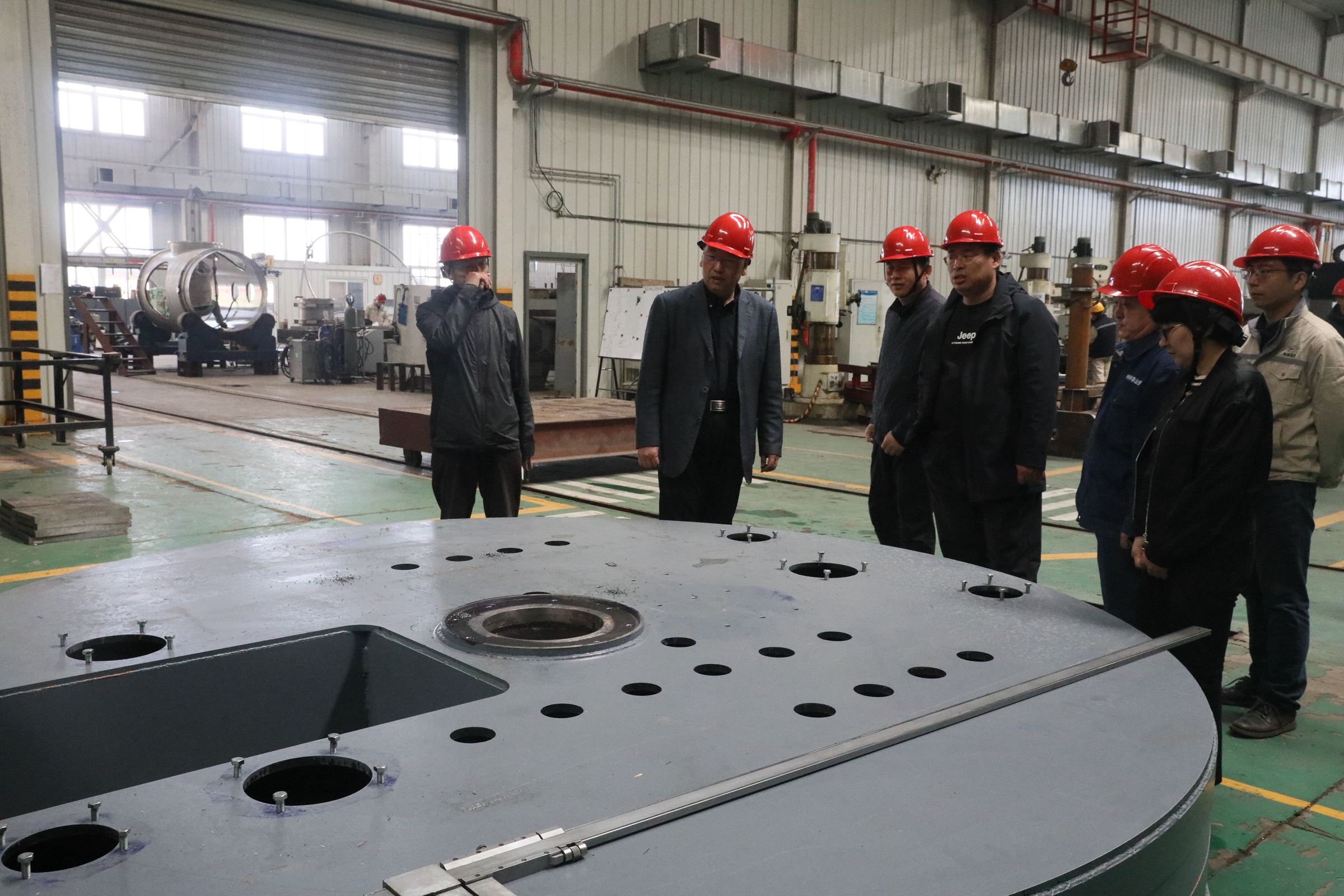 在二部园区,熊柏青到真空装备生产现场详细了解了电子束熔炼装备、热沉、真空炉等产品的技术水平、生产情况和市场应用情况。