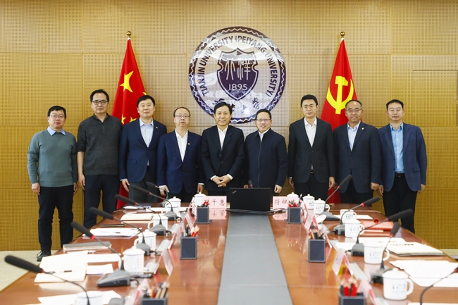 副总经理毛昌辉到天津大学拜访交流,双方共同召开智能传感功能材料领域建设发展研讨会。天津大学校长、中国工程院院士柴立元,天津市科技局党委书记、局长朱玉兵,党委委员、副局长谭振东,天津大学党委常委、常务副校长胡文平,党委常委、副校长王天友出席会议。