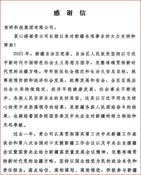 集团收到两封特殊的感谢信,信件分别来自中共贵州省委和贵州省人民政府和中共新疆维吾尔自治区委员会和自治区人民政府。