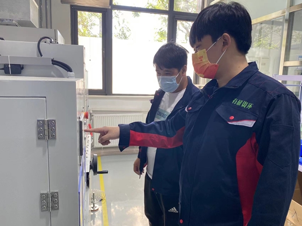 国联研究院技术人员检查生产设备,保障电池试制任务顺利进行
