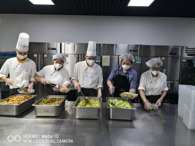 兴友餐饮工作人员正在分装职工晚餐