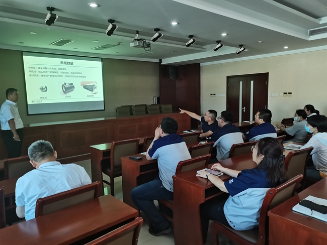 本次培训由镜头事业部经理赵健主讲,他采用理论结合案例的方式,从镜头组成、调焦方式、焦距数量、探测器、光圈及应用场景等方面进行了详细的讲解。