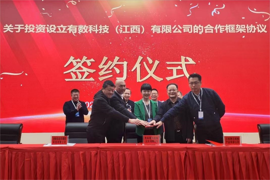 近日,有科出版在江西赣州举办有数科技(江西)有限公司(简称有数科技)启动仪式。有科出版与江西理工科技产业有限公司、永链元(北京)数据科技有限公司、北京云算海数科技有限公司、北京知道同行科技合伙企业的代表签署了《关于投资设立有数科技(江西)有限公司的合作框架协议》,有科出版董事长、总经理钱九红与出席会议的嘉宾共同见证了有数科技正式启动。
