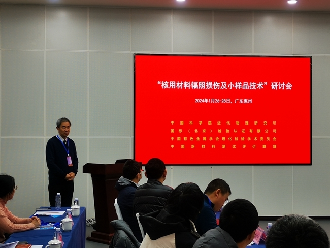 1月26日至28日,“核用材料辐照损伤及小样品技术”研讨会在广东省惠州市召开。本次会议由中国科学院近代物理研究所、国标(北京)检验认证有限公司联合主办,中国有色金属学会理化检验学术委员会、中国新材料测试评价联盟共同承办。来自中国科学院近代物理研究所、中国原子能科学研究院、中国核动力研究设计院、中国科学院金属研究所、中广核研究院有限公司、苏州热工研究院、六合彩特码