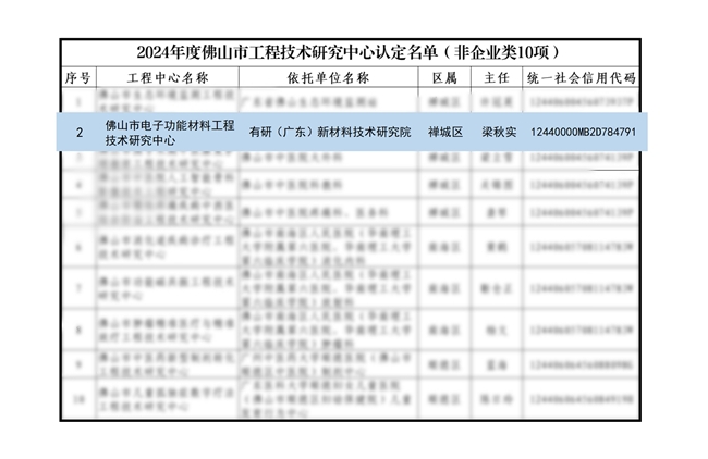 广东院申报的“佛山市电子功能材料工程技术研究中心”成功获得认定。