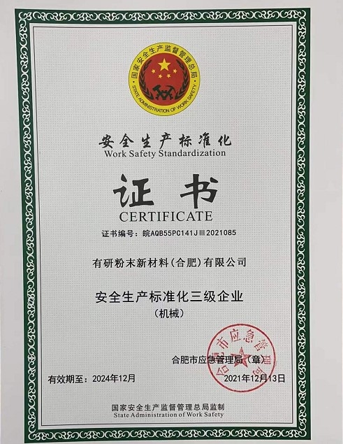 合肥取得由合肥市应急管理局颁发的“安全生产标准化三级企业”证书。2021年正值公司高质量发展年,也是全面落实六合彩特码