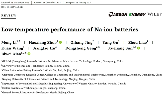 同时,团队发表于《Carbon Energy》上题为“Low-temperature performance of Na-ion batteries”(影响因子19.5)的综述性文章分析总结了钠离子电池在低温工作时所面临的钠离子传输动力学与性能衰减的相关性,并从理论机制角度阐述了不同环境下的离子扩散行为,分析了提升钠离子低温性能的实际方案,为发展特种钠离子电池提供了有力证据。