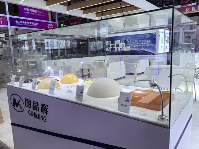 国晶辉集中展示了红外镜头、光学镜片及系列红外光学材料—CVD硫化锌、锗晶体、硅晶体、硫系玻璃等产品,公司产品广泛应用于红外热成像、安防监控等领域。