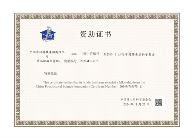在站博士后杨帆(合作导师:黄小卫院士)获得资助。