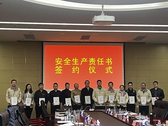 会前,与会人员观看了安全生产警示教育片。各职能部门、业务部门负责人签署《2025年度安全生产责任书》。