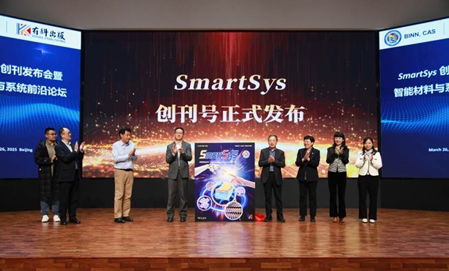 3月26日,由北京市科学技术委员会主管,中国科学院北京纳米能源与系统研究所(简称纳米能源所)主办,有科出版编辑出版的高起点新刊SmartSys(《智能系统(英文)》)创刊发布会暨智能材料与系统前沿论坛,在坐落于怀柔科学城的纳米能源所召开。中国科学技术协会科学技术创新部部长刘兴平,中国科学院外籍院士、纳米能源所所长、SmartSys主编王中林,国家自然科学基金委员会科学传播与成果转化中心主任彭杰,中国期刊协会副会长、有科出版总编辑钱九红,中国科学院文献情报中心计量与评价部研究员马峥,约翰威立国际出版集团中国区合作出版总监张大平,怀柔区科学技术委员会创新发展科马顺昌,北京大学材料与工程学院副院长周欢萍等人出席。
