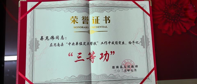 近日,集团派驻贵州省思南县挂职干部易见伟被思南县人民政府记三等功,吴桂勇荣获“全省乡村振兴优秀驻村第一书记”。