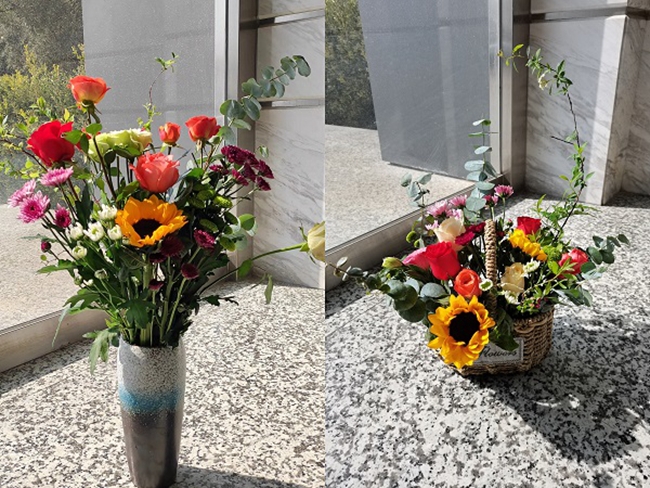 接下来,女职工们在花艺老师的指导下,运用搭配好的花材,通过自己的巧手,打造出各具特色的花篮和花瓶。