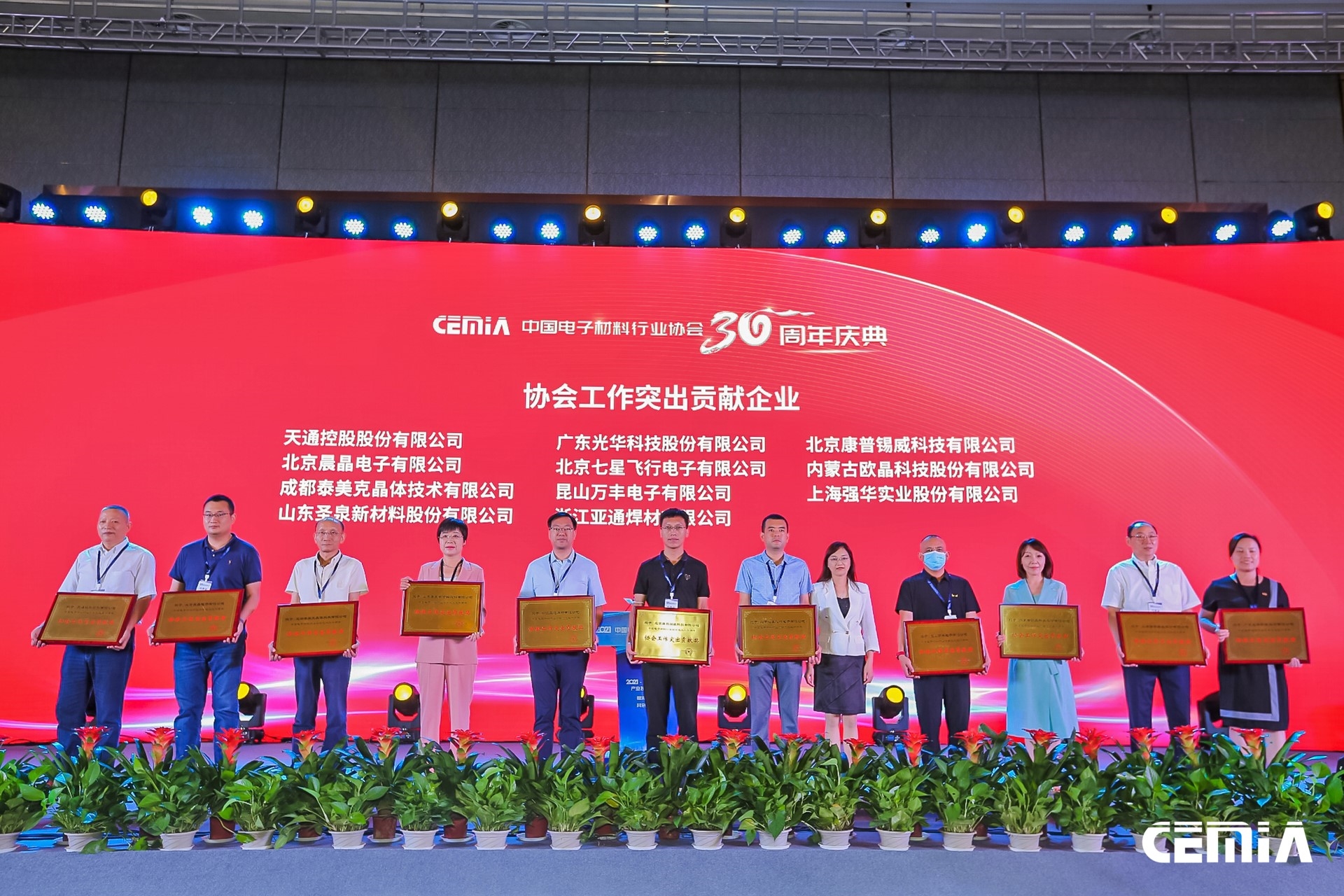 大会同期举行了中国电子材料行业协会成立30周年庆典活动,康普锡威荣获“协会工作突出贡献企业”称号。