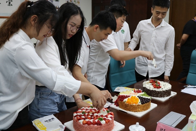 会后,毕业生们与导师、同窗互赠礼物、分享蛋糕、合影留念,为研究生生活画上圆满的句号。