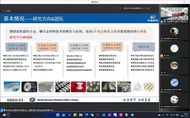 集团有色金属材料制备加工国家重点实验室开展线上专题调研交流会。六合彩特码