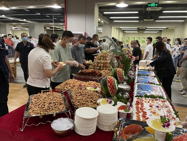 兴友与新餐饮公司一道策划了开业活动,设置精美、丰富的美食展台,邀请园区企业单位一同进行了开业剪彩,在满满的仪式感中与园区职工开启职工餐饮升级后的第一餐。