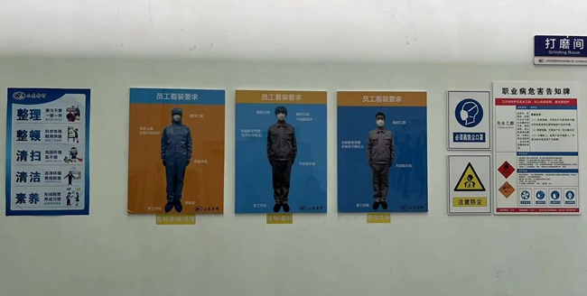 红外材料生产部从“整理”、“整顿”着手,逐步落实定品、定位、定量工作,从定置定位、分区包干、责任落实、评比互促等方面开展安全目视化管理,并向精细化细节过程管理逐步深入,同时将管理标准和制度制作成挂图和展板张贴悬挂,以图文并茂的方式方便现场员工快速理解掌握。