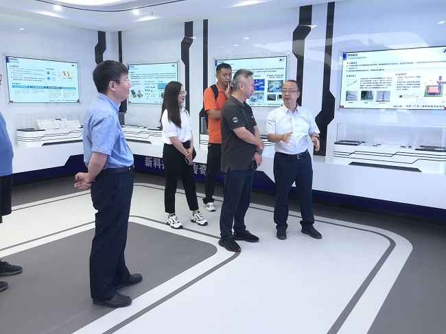 广东院展室,毛昌辉详细介绍了广东院研究领域布局、人才队伍建设等情况。双方表示后续将推进在氢源杂质气体的毒化机理研究、氢能相关标准等方面开展合作,共同促进技术开发和市场应用发展。