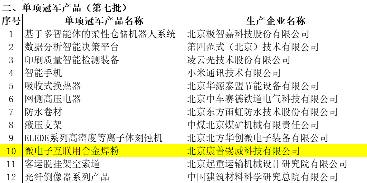 粉材所属公司康普锡威研发的“微电子互连用合金焊粉”获评国家第七批制造业单项冠军产品。此外,作为首批国家级专精特新“小巨人”企业,康普锡威通过复核。