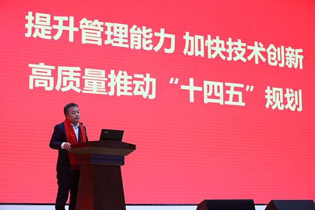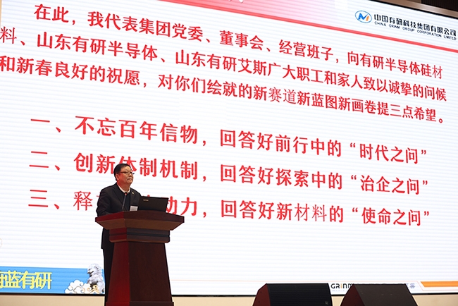 会议最后,总经理张果虎代表公司做了题为“提升管理能力 加快技术创新 高质量推动‘十四五’规划”的总结讲话,激励员工保持艰苦奋斗、敢于拼搏的本色精神,坚持“技术领先”的发展战略,以市场为导向,以客户为中心,立足北京,扎根山东,抢抓市场,科学生产,为成为世界一流半导体企业不懈努力!