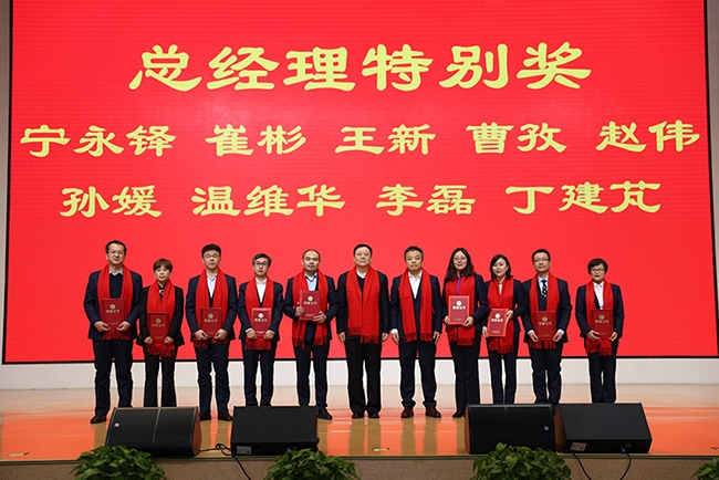 大会对2022年度表现突出的优秀员工进行了表彰,颁发了2022年度总经理特别奖。总经理特别奖代表孙媛,优秀员工代表杨卫国、王海涛分别发表获奖感言,表示在新的一年将继续努力奋斗,为公司发展贡献力量。