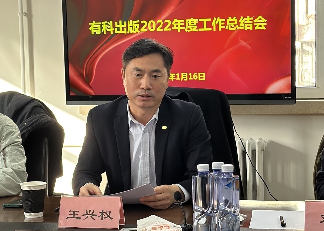 王兴权对有科出版2022年取得的成绩给予了高度评价并表示祝贺。他强调,2023年是全面贯彻落实党的二十大精神开局之年,有科出版全体干部职工要认真学习贯彻党的二十大精神和习近平总书记关于学术期刊的重要指示批示,落实集团工作会议各项要求,坚定战略定力、把握时代机遇,以斗争精神迎接新挑战、以奋进拼搏开辟新未来,着力探索工程技术领域学术期刊高质量发展路径,为“我国学术期刊综合实力跃居世界第一方阵”的宏伟目标早日实现,不断做出新成绩、新贡献。