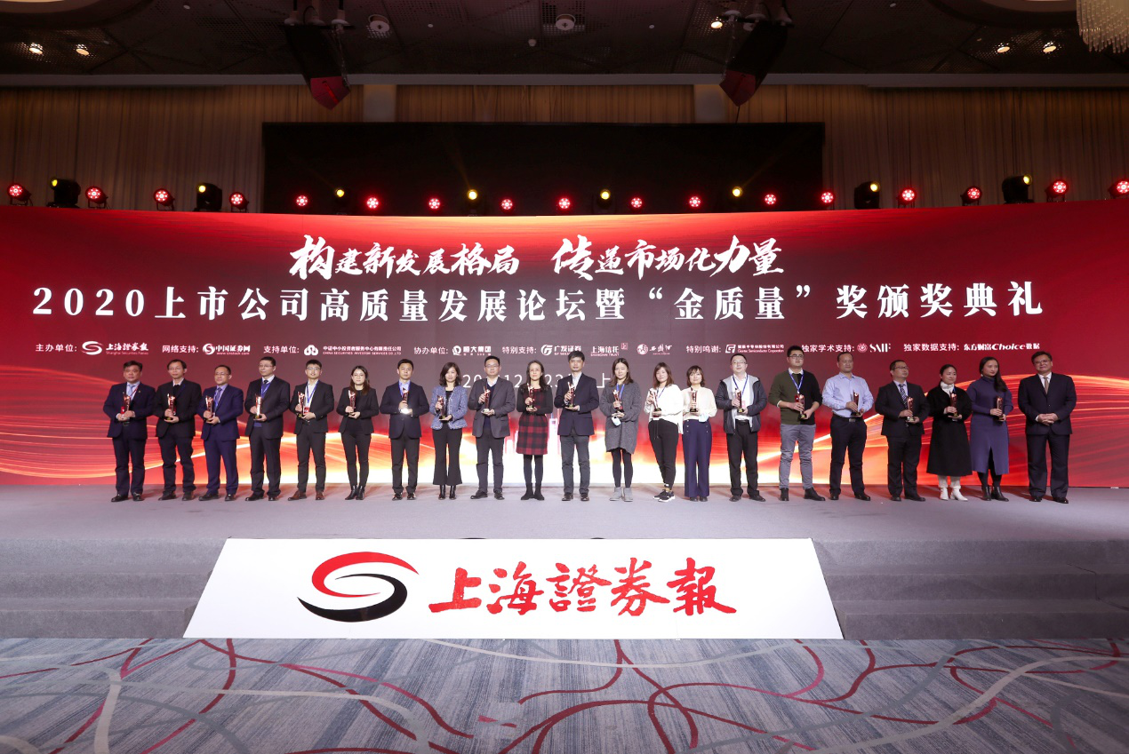12月23日,由上海证券报主办的“2020上市公司高质量发展论坛暨‘金质量’奖颁奖典礼”在上海举行。六合彩特码