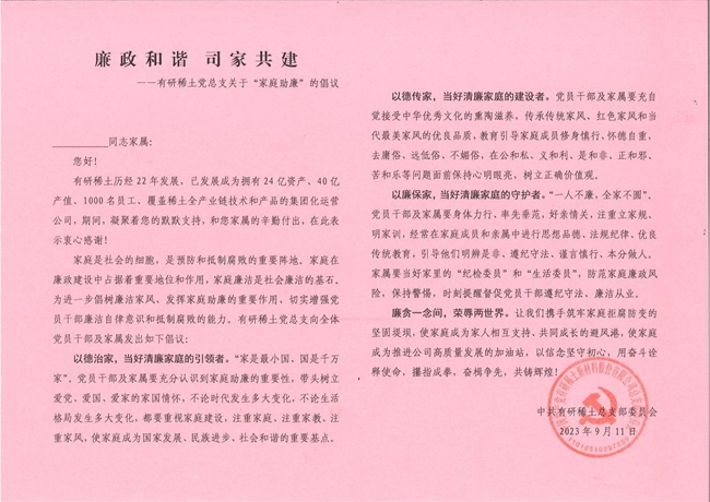 新材将致力把党风廉政教育宣传月活动打造成为公司特色活动和党建品牌,全方位推动广大党员干部勤掸“思想尘”、多思“贪欲害”、常破“心中贼”,不断提升一体推进三不腐的治理效能,为公司营造干事创业的热情和风清气正的氛围提供坚强的纪律保障和有力支撑。