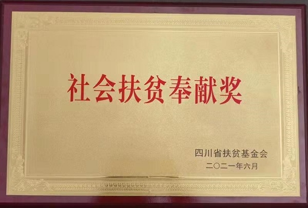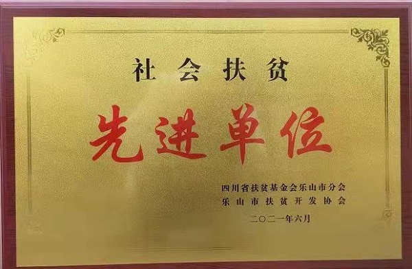 被四川省扶贫基金会授予“社会扶贫奉献奖”,被四川省扶贫基金会乐山市分会和乐山市扶贫开发协会评为“社会扶贫先进单位”。