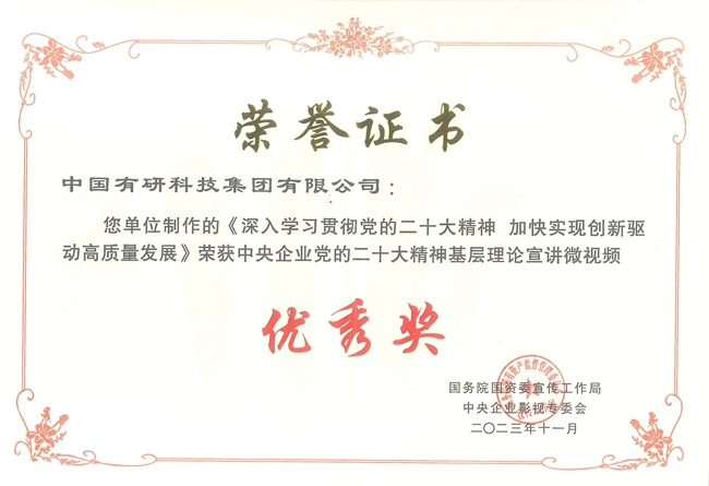 再出发》和《深入学习贯彻党的二十大精神 加快实现创新驱动高质量发展》分别入选第四届中央企业社会主义核心价值观主题微电影(微视频)和中央企业党的二十大精神基层理论宣讲微视频优秀作品。