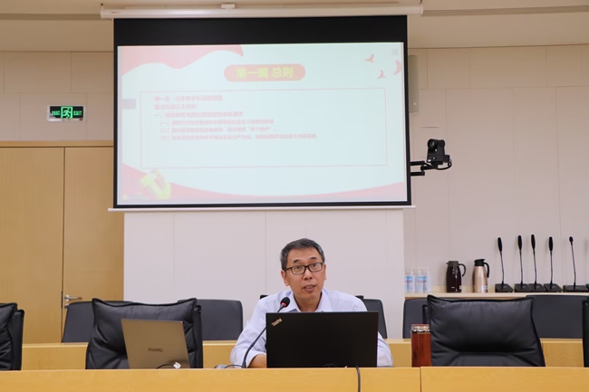 张英新以“学习《中国共产党纪律处分条例》 做合格共产党员 为奋进新征程提供坚强纪律保障”为题,深入解读《中国共产党纪律处分条例》修订的背景、意义、主旨要义和规定要求,深刻剖析违纪典型案例,并联系国标检验工作实际提出具体落实要求。