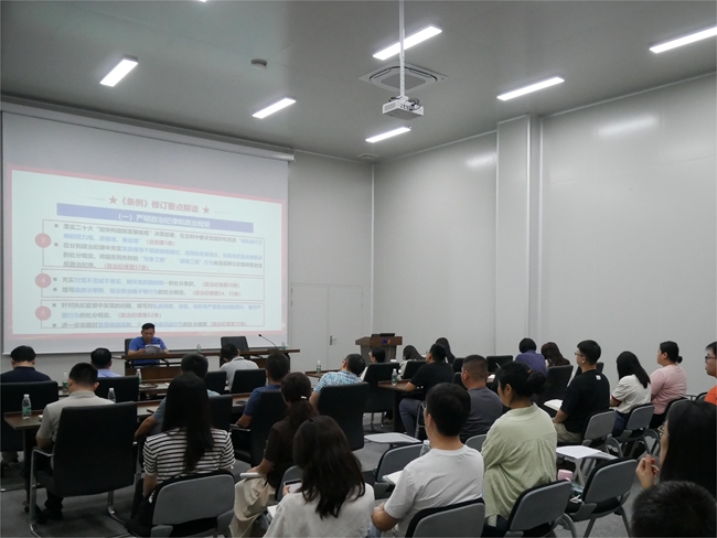 广东院党支部纪检委员王磊为支部全体党员、各部门负责人及科技骨干讲授纪律党课。