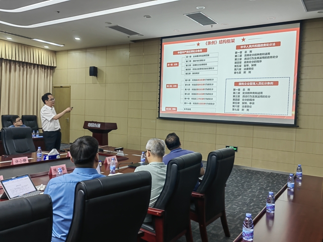资环院党总支书记、执行董事、总经理姚国成就企业合规管理工作进行专题讲解,并做警示教育。各党支部书记从动员部署、原原本本学《中国共产党纪律处分条例》、讲授纪律党课、警示教育等方面报告了本支部党纪学习教育开展情况。