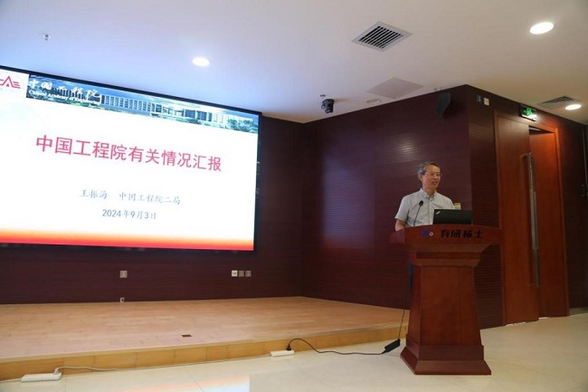 人的不懈努力拼搏下,发展成为具有国际影响力、以稀土资源开发、冶炼分离、稀土新材料及应用全产业链布局创新链的重要研发机构,开发出一系列创新成果,培养出一批高水平创新人才,为我国稀土工业体系的建立、发展壮大和升级做出了突出贡献。王振海局长在讲话中强调,中国工程院是中国工程科技界最高荣誉性、咨询性学术机构,是国家高端智库,是国家战略科技力量。我们要贯彻落实党的二十届三中全会精神、习近平总书记致中国工程院建院30周年贺信精神和在“科技三会”上的重要讲话精神,要把握世界科技发展趋势,善于乘势而为;要聚焦国家重大需求,服务中央战略决策;要充分发挥工程院的特色优势,做强科技高端智库,为实现高水平科技自立自强、建设世界科技强国作出更大贡献。