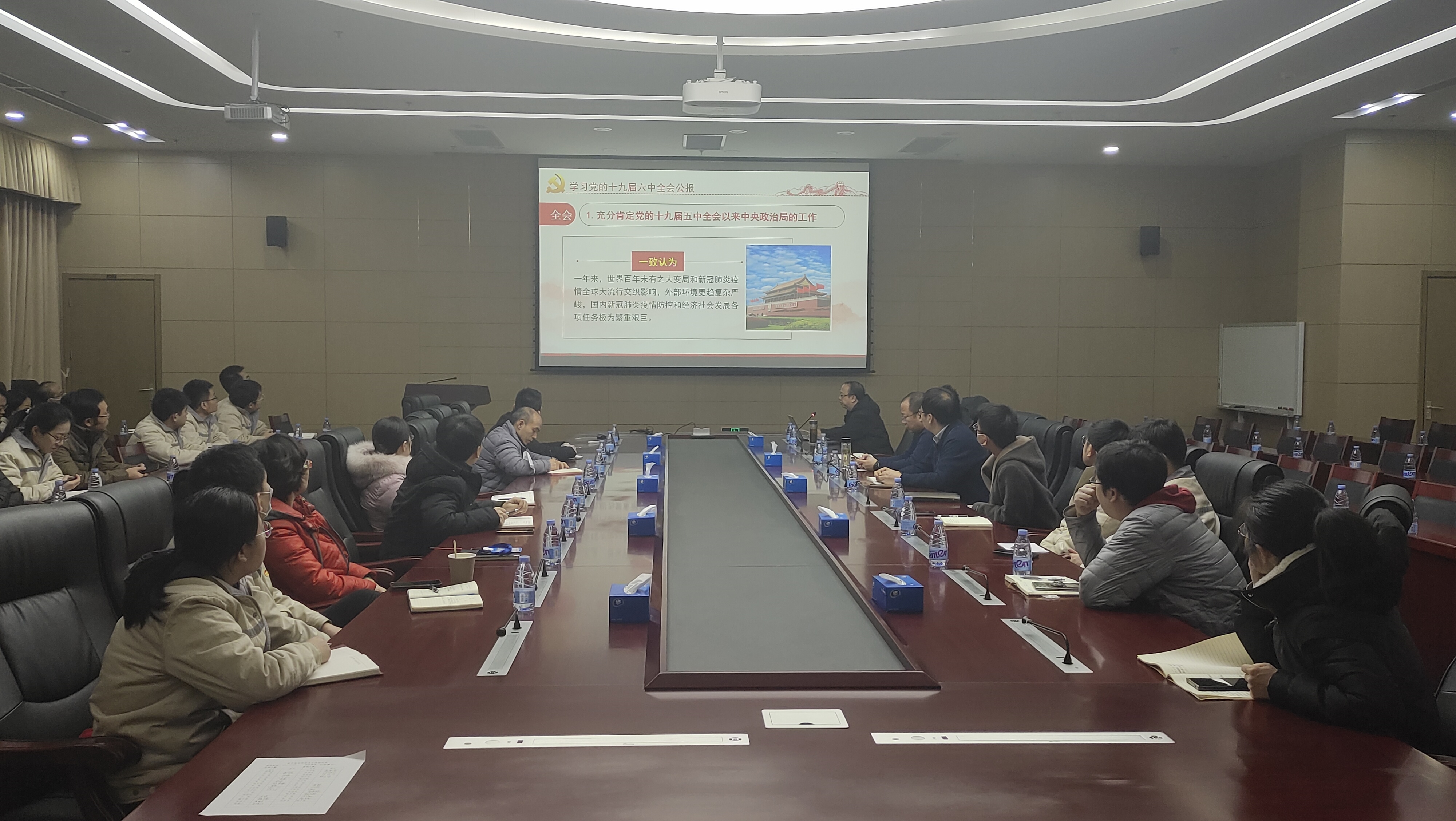 工研院总经理、党委副书记毛昌辉讲授《学习贯彻党的十九届六中全会精神》专题党课。会议由电子党支部书记杨志民主持,支部党员、职工40余人参会。