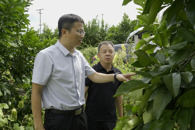 在邵家桥镇珠池坝村,李志辉一行调研“特色田园乡村示范点”建设情况。来到千亩柚子园产业示范基地,他详细了解示范基地建设项目和柚子产业发展情况。他指出要依托当地丰富的资源,打造具有鲜明当地特色的农业、旅游、文化产业融合体。