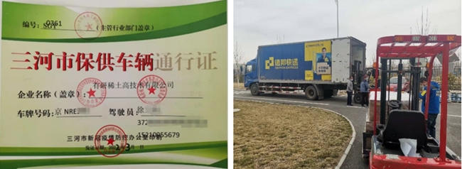因市内道路封闭,生活物资和生产原料等无法运输,党总支积极与三河市政府联系,申请到保供车辆通行证,确保生产基地在封闭管理期间各类生产生活物资的物流畅通。